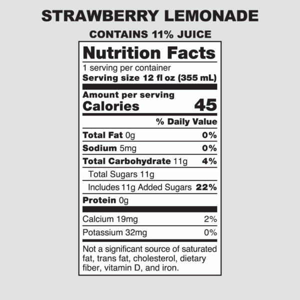 Water, organic cane sugar, strawberry juice concentrate, lemon juice concentrate, natural flavors, citric acid, lemon extract, hemp extract*, natural color, stevia extract, monk fruit extract.