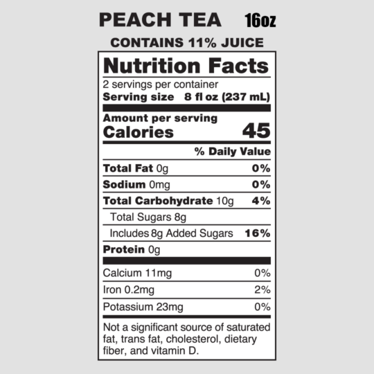 Water, organic cane sugar, peach juice concentrate, natural flavors, tea extract, citric acid, natural colors, hemp extract*, stevia extract, monk fruit extract