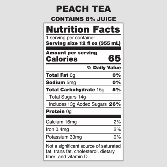 Water, organic cane sugar, peach juice concentrate, natural flavors, tea extract, citric acid, natural colors, hemp extract*, stevia extract, monk fruit extract